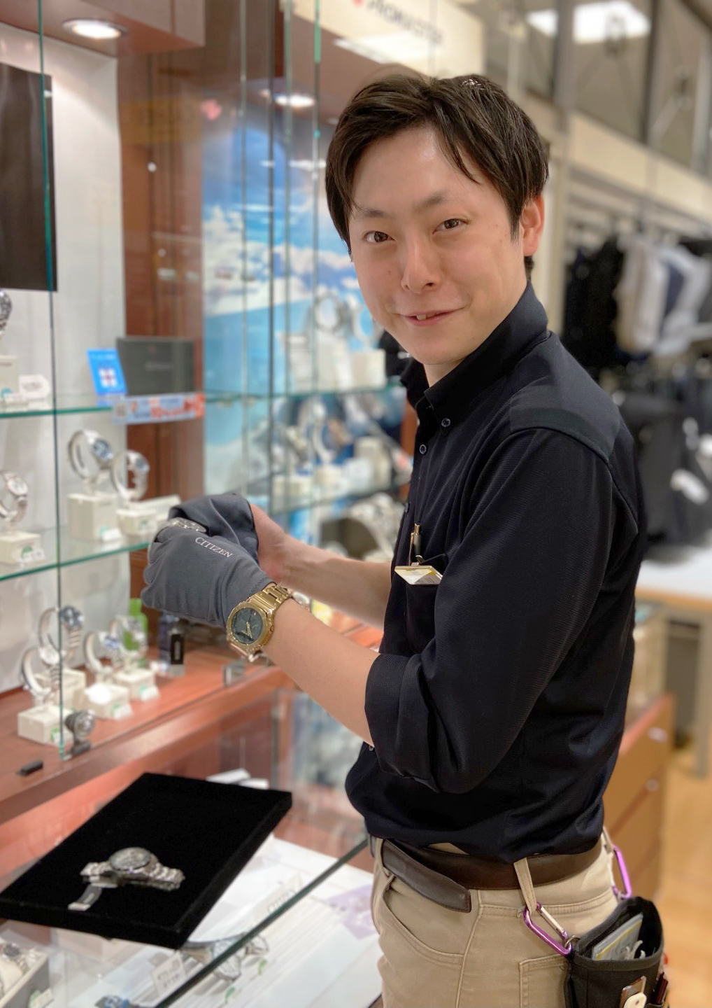 入社のきっかけは、接客が好きだったのでお客様が喜んでいただけるような仕事を求めていたところ、弊社の記事を見かけ、自分が求めていた接客スタイルで働く事ができるのではと思い応募し採用されました。入社してからは、時計の知識など覚えなくてはいけない等の大変な部分はありましたが、お客様に喜んで頂ける姿を見ると、いつも自分も嬉しい気持ちになり とてもやりがいのある仕事だと感じています。また私は現在転勤しているのですが、異動先によってお客様の反応や客層がガラッと変わる事もあるので、「どういう風に接客したらお客様と話が弾むのだろう、良い接客ができるだろう」と考える場面もあり、常に成長することができる楽しい仕事だと思っています