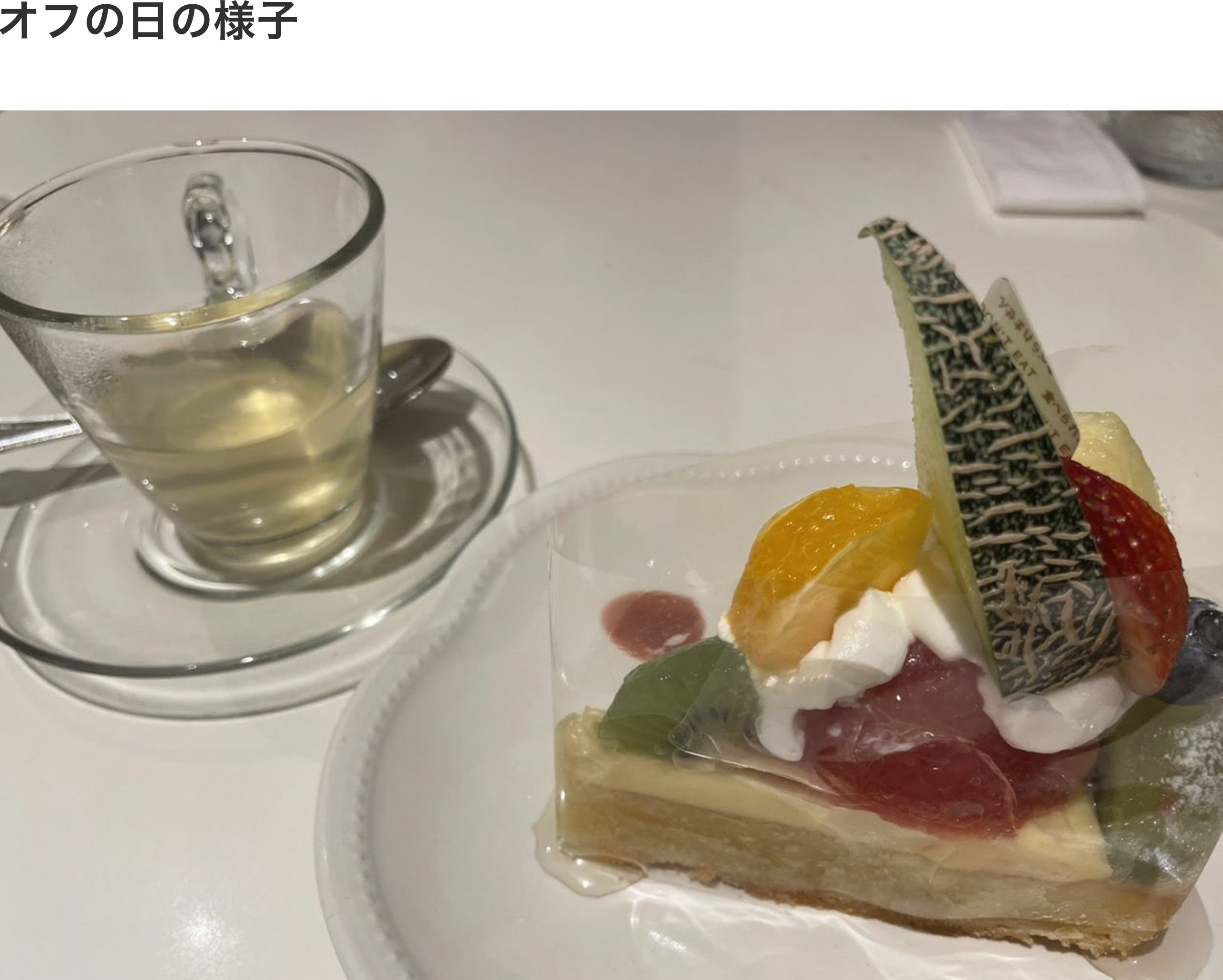 休みの日は仕事を忘れて楽しむことを心掛けています。ストレス解消も含めてスウィーツを食べてテンションを上げて、明日への活力にしています。また直接、時計販売とは関係ないですが流行りのスウィーツを探したり食べたりすることで流行にも敏感になっていると感じています。